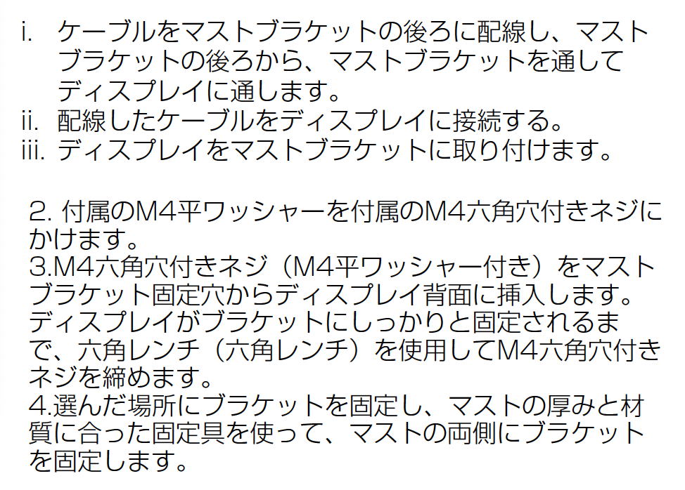 | 4. シングルマストブラケット付き/8xデュアルマストブラケット付き M4x14 六角穴付きネジ | 8 |