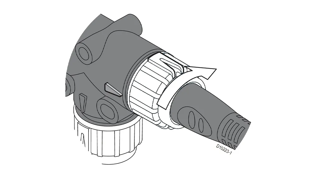 | 1. | カラーをロック解除位置に回転させます(成型された矢印が揃うようにします)。 |